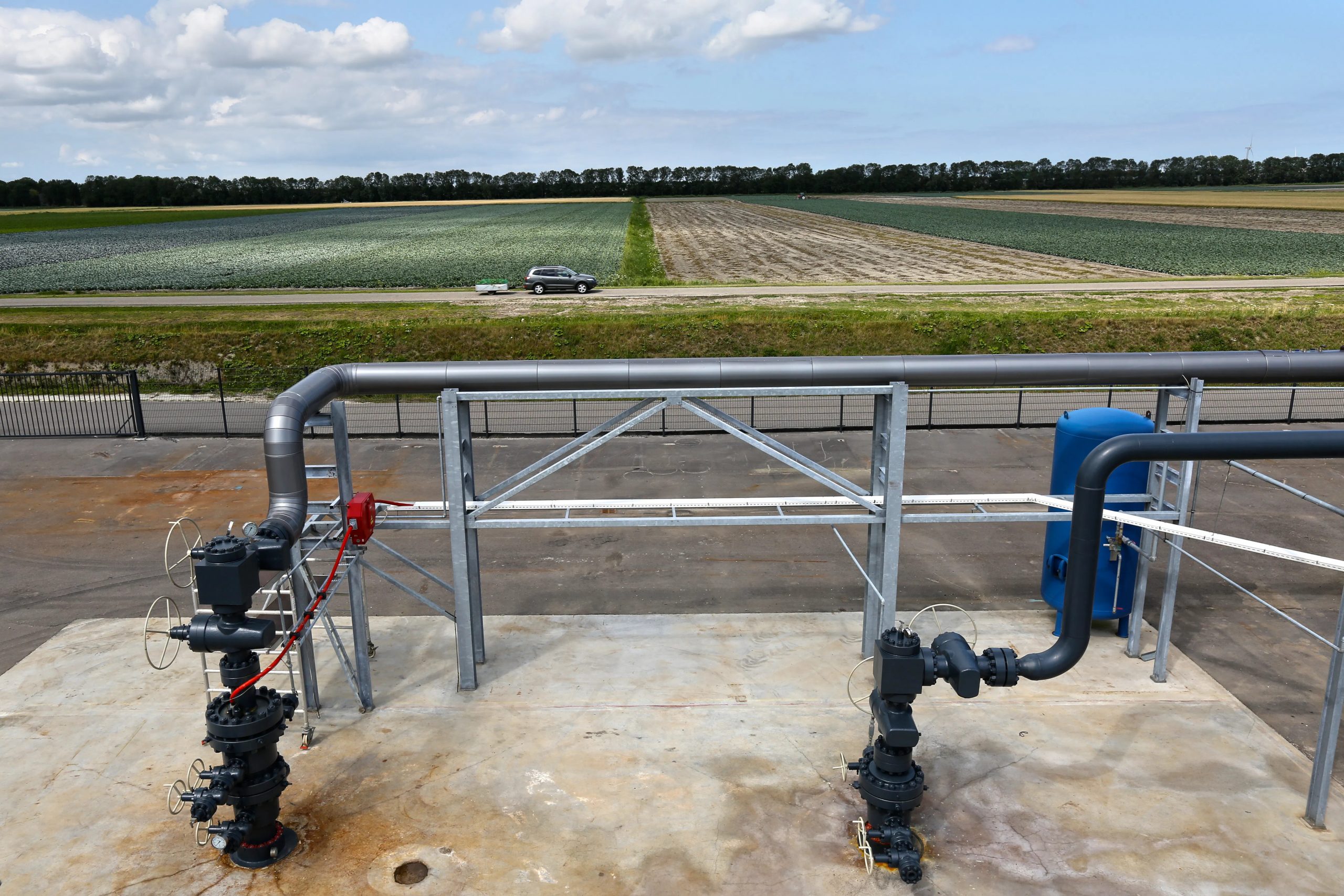 - Een pomp zorgt ervoor dat het tot ongeveer 30°C afgekoelde aardwarmte-water weer via een tweede put terugstroomt naar het ondergrondse reservoir. In de aarde warmt het water weer vanzelf op. De pompen zorgen voor de aan- en afvoer in de put. De pompen geven enig geluid, maar dit geluid is niet hoorbaar buiten de locatie.